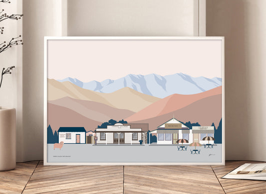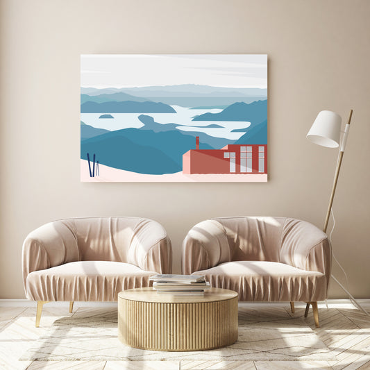 Treble Cone Base Building and View Art Print. Lake Wanaka, New Zealand.