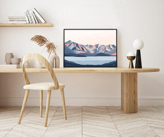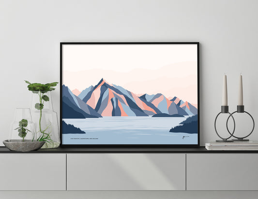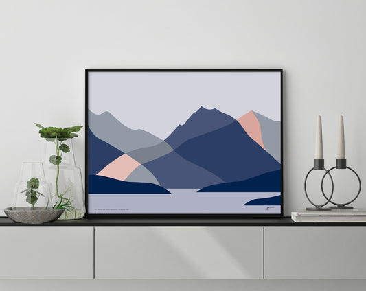 Queenstown Mountains, Lake Wakatipu, Walter Peak. New Zealand. Modern Landscape Travel Art Print