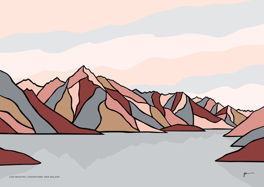 QUEENSTOWN HILL VIEW, New Zealand Contemporary Lake and Mountain Art Print