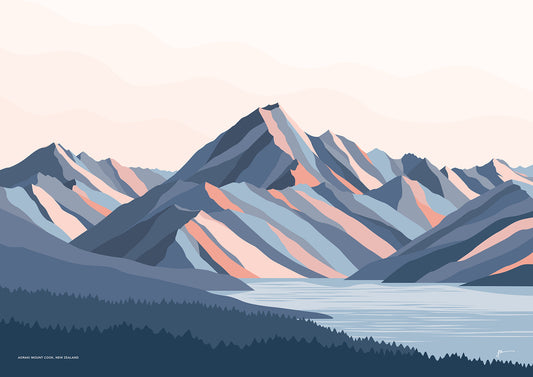 Aoraki Mt Cook New Zealand Art Print. Modern Mountain Artwork