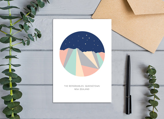 The Remarkables Night Southern Cross Modern, Queenstown, New Zealand Geometric Design Card