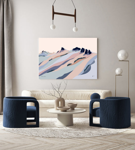 Modern USA and Canada art prints. This mountain art collection celebrates beautiful and memorable places in Bridget's unique and contemporary style. They make the perfect gift for anyone who loves the mountains or a memento of cherished memories. High quality and affordable framed, unframed or canvas prints with free worldwide shipping.