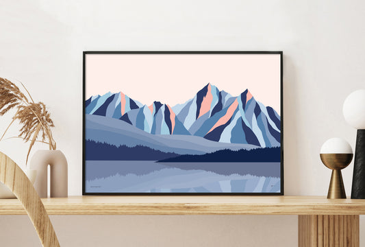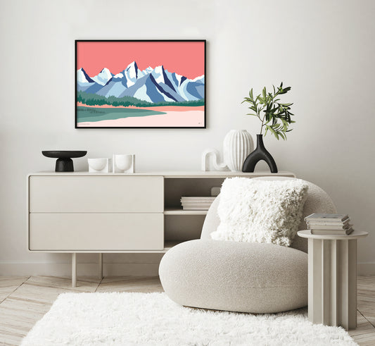 Pink Grand Teton Art Print, Grand Teton National Park, Jackson Hole, Wyoming Modern Mountain Wall Art