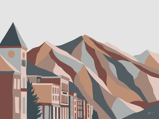 Telluride, Colorado. Modern Mountain Ski Town Landscape Art Print Rustic Pallette