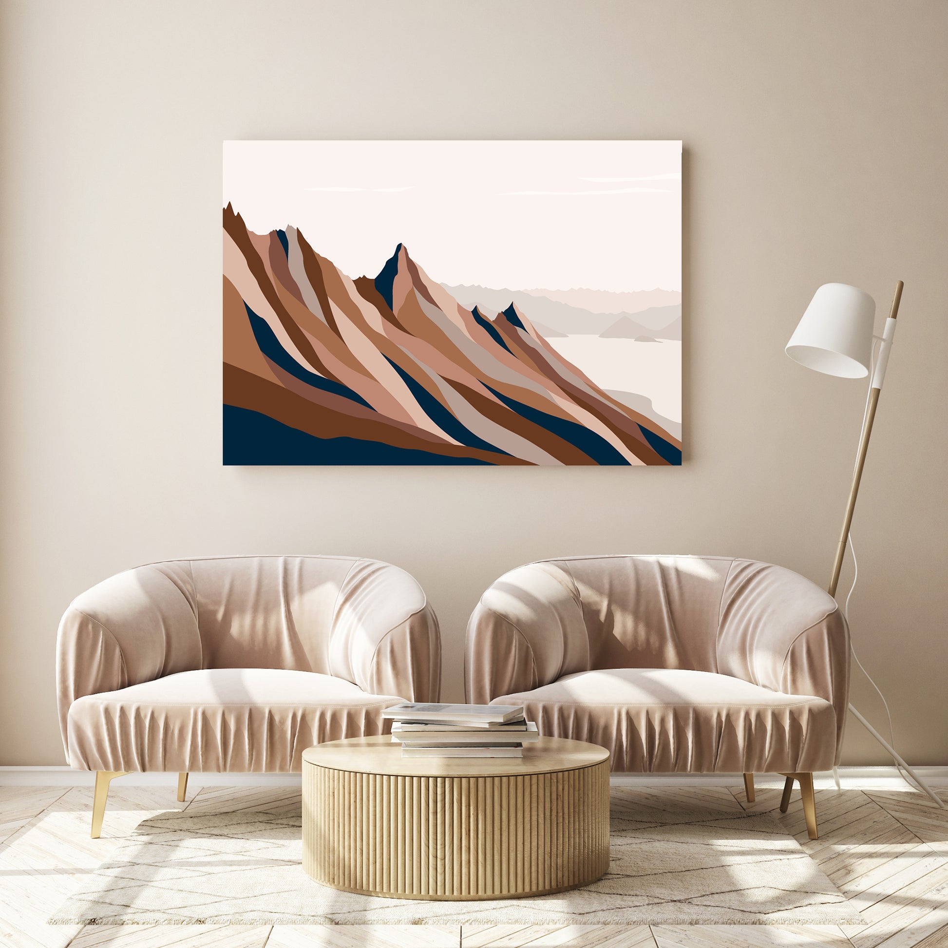 Modern mountain art print of Isthmus Peak trail which is one of the most popular hiking tracks in New Zealand. The Peak stands above the narrow isthmus between Lake Wanaka and Lake Hawea. After a long trek you are rewarded with stunning lake and mountain views in every direction. When creating this artwork I wanted to capture the natural colours and folds of the mountain in a contemporary art print that would complement any decor. Enjoy!