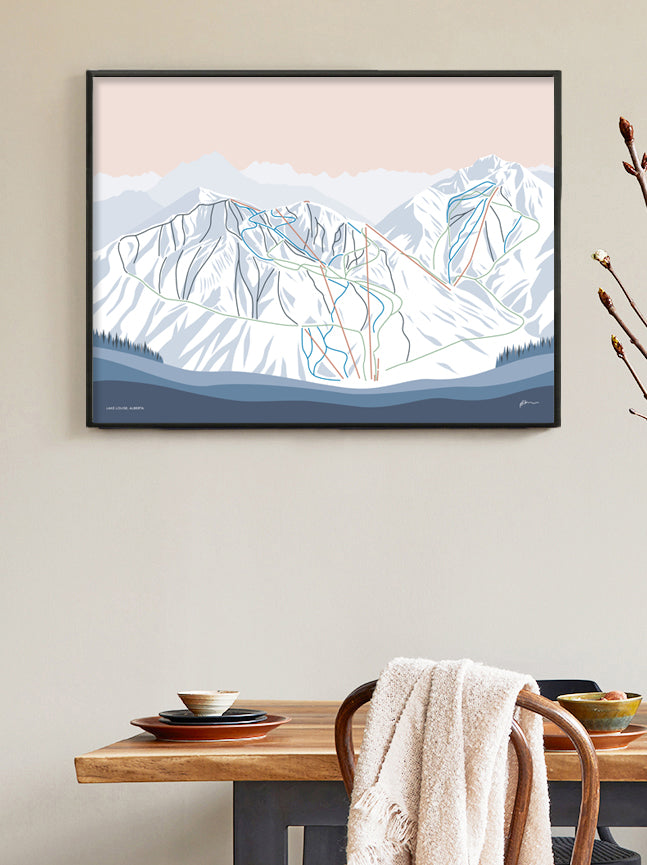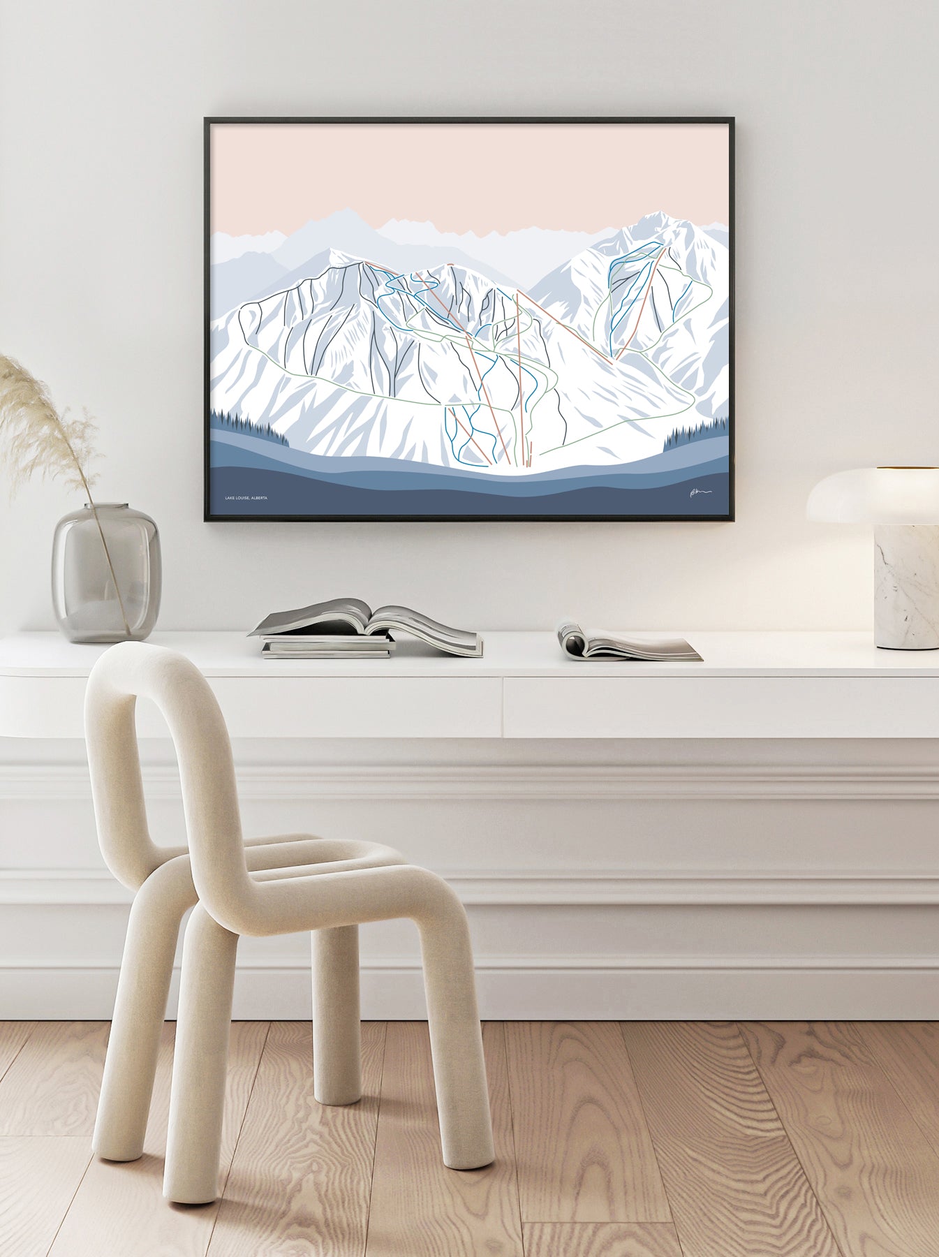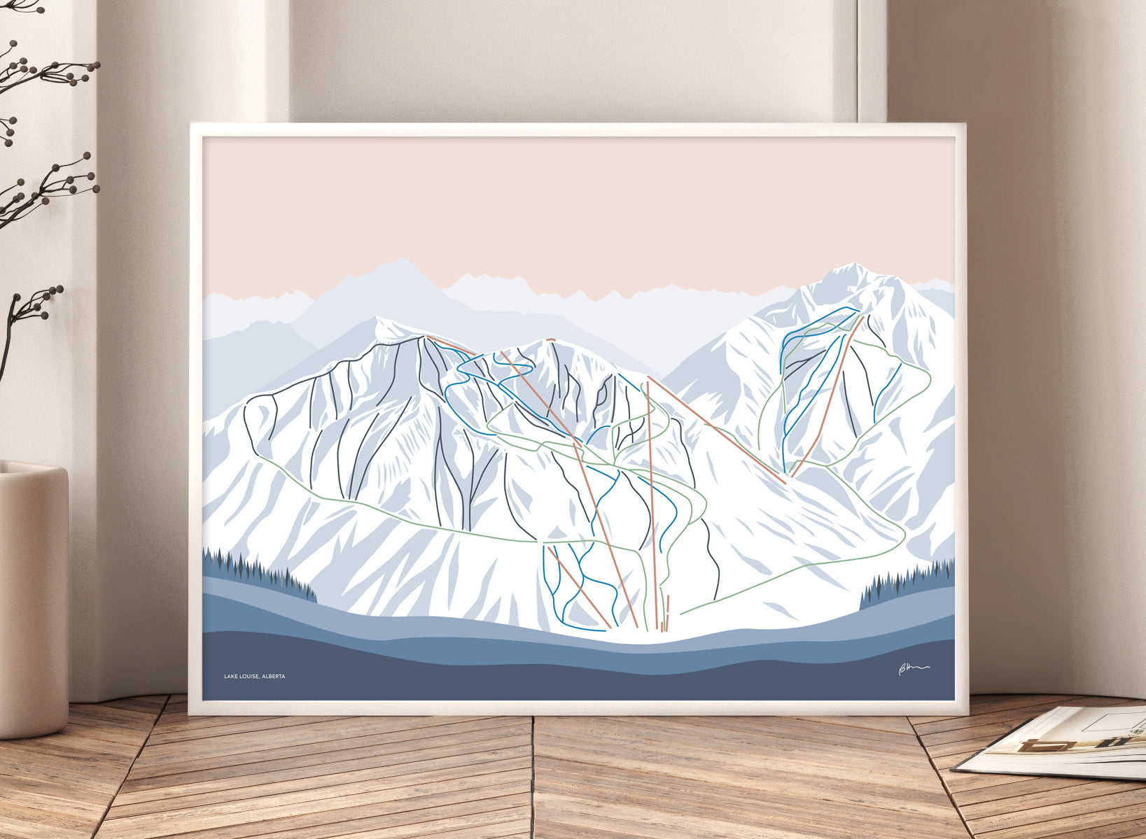 This Lake Louise, Alberta modern ski resort trail map makes a great memento of a ski trip to this beautiful mountain. It would also be the perfect artwork for a mountain home or Banff Airbnb, or gift for skier/snowboarder. I hope you enjoy this art print!