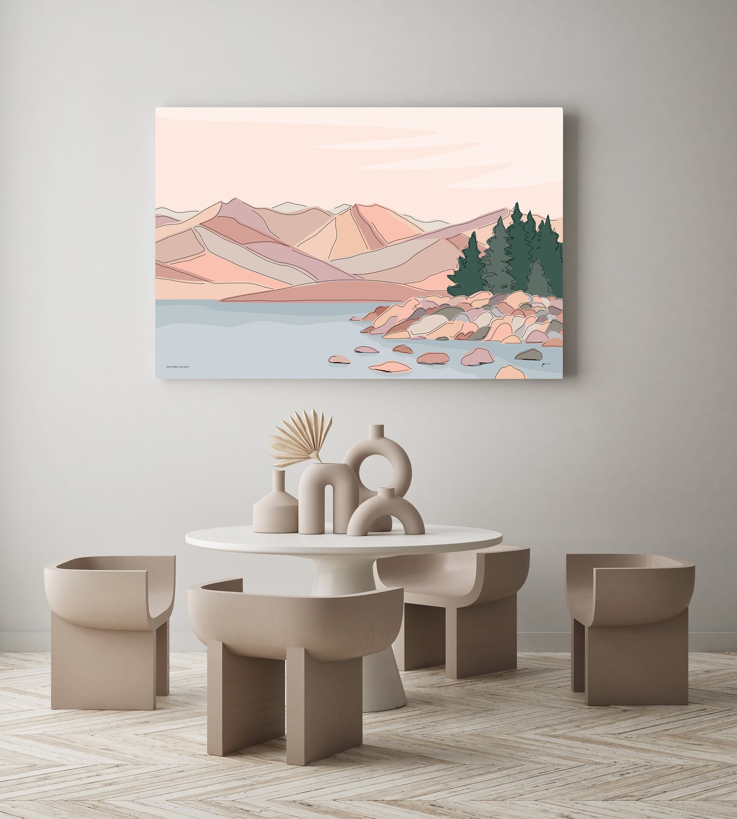 A modern Sand Harbor, Lake Tahoe art print or canvas. The clear waters of Lake Tahoe, beautiful rock formations and views of the surrounding Sierra Nevada mountains make this a memorable and idyllic place to visit at any time of year. I was inspired to create this Lake Tahoe wall art because I loved the beauty of this place when I visited and I wanted to capture a modern and slightly abstract representation using an interesting colour palette that enhances any interior decor. I hope you enjoy it!
